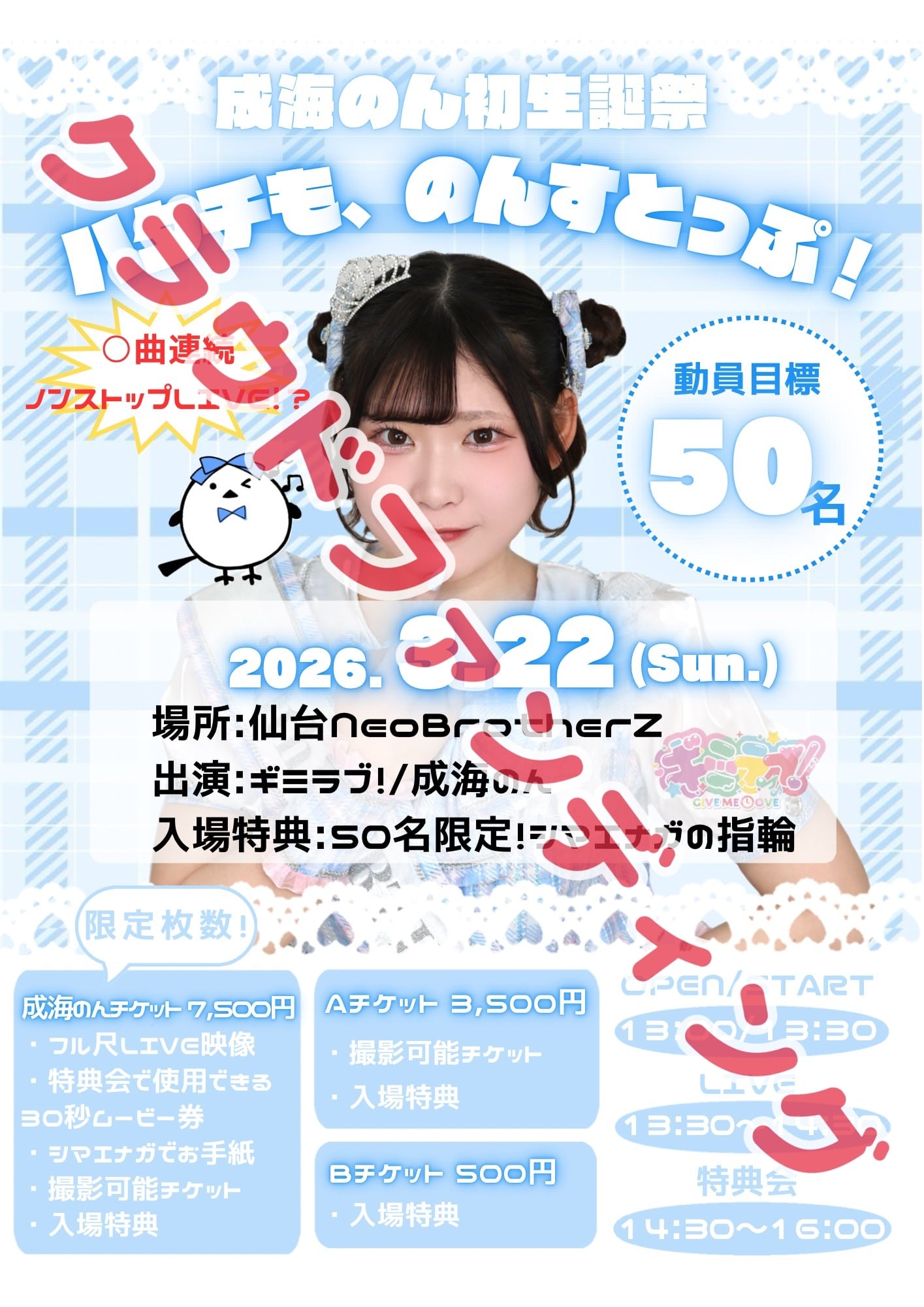成海のん初めての生誕祭にはなりますがご確認の程、何卒よろしくお願い致します。